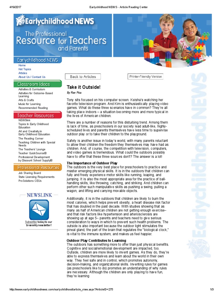 Earlychildhood News Article Reading Center PDF Preschool Early